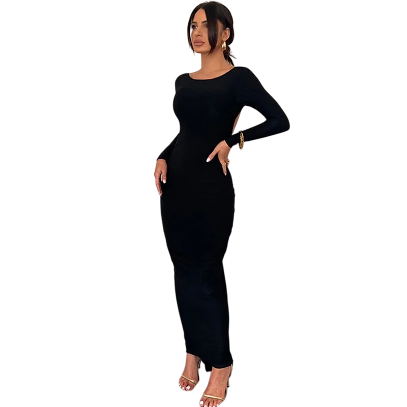 Stile Elegante Abito da Sera da Donna Senza Schienale a Maniche Lunghe
