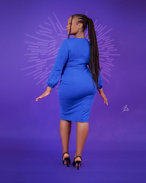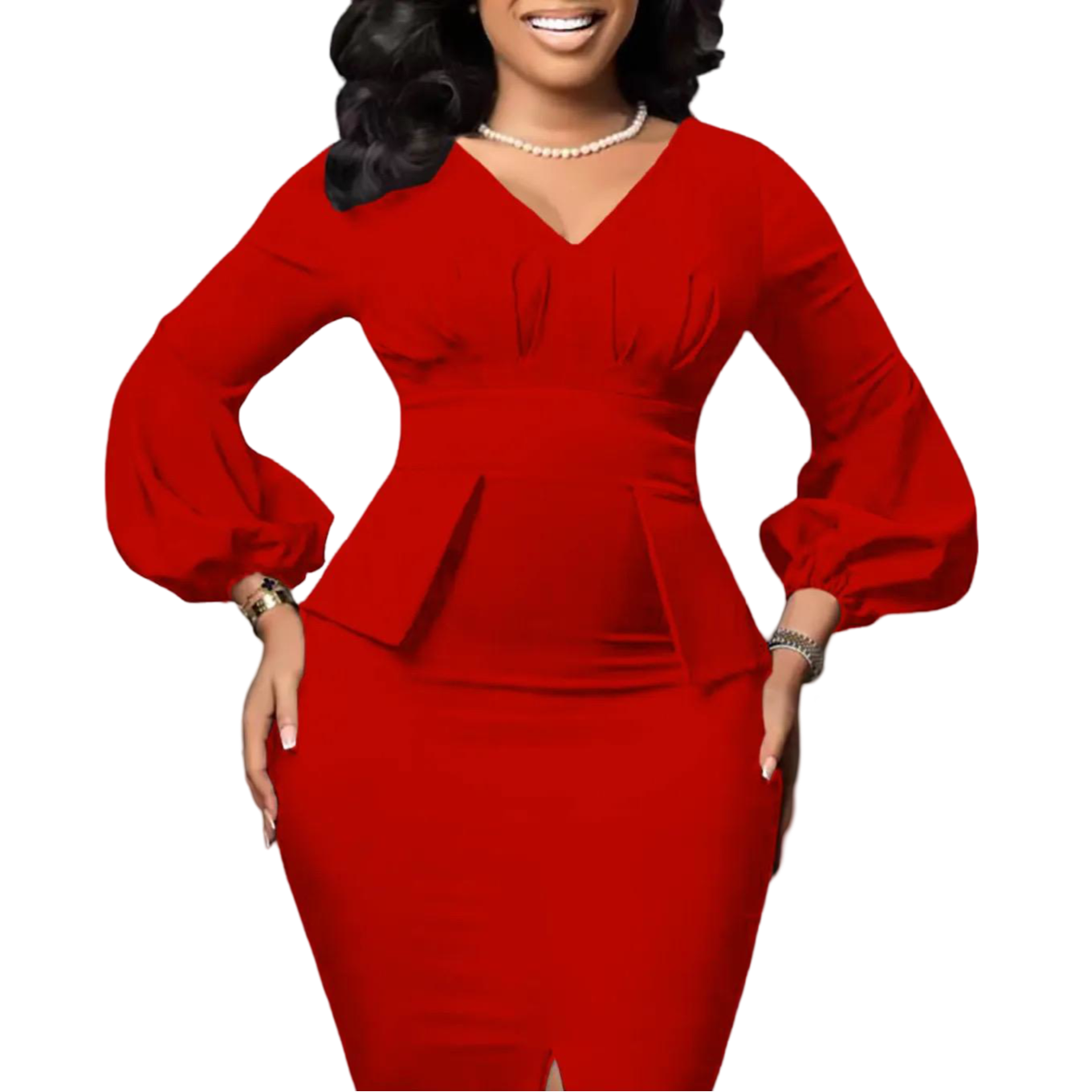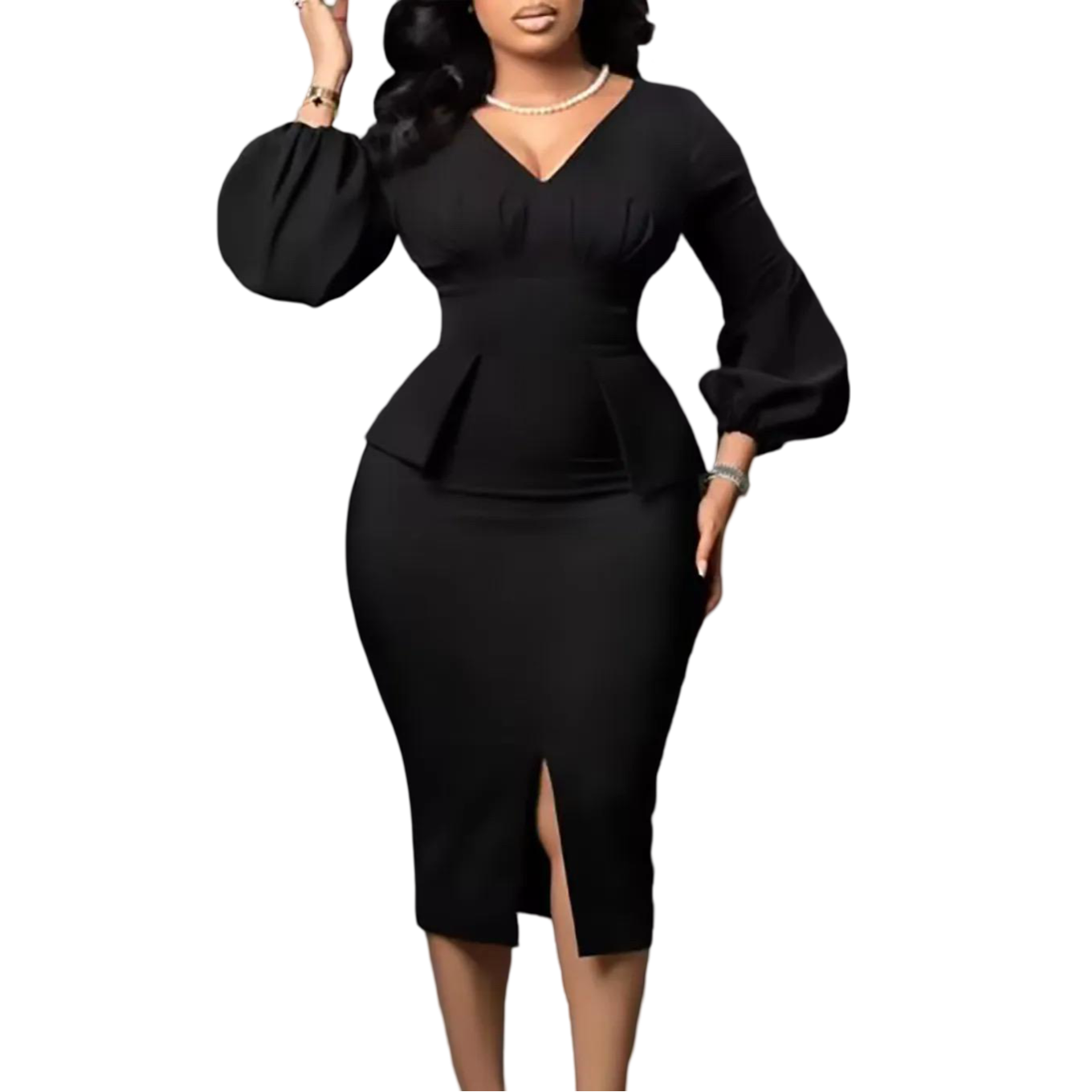 Stile Elegante Solido Slim Fit Matita Vestito Lungo Manica a Sbuffo Fessura Temperamento Carriera Ufficio Plus Size da Donna