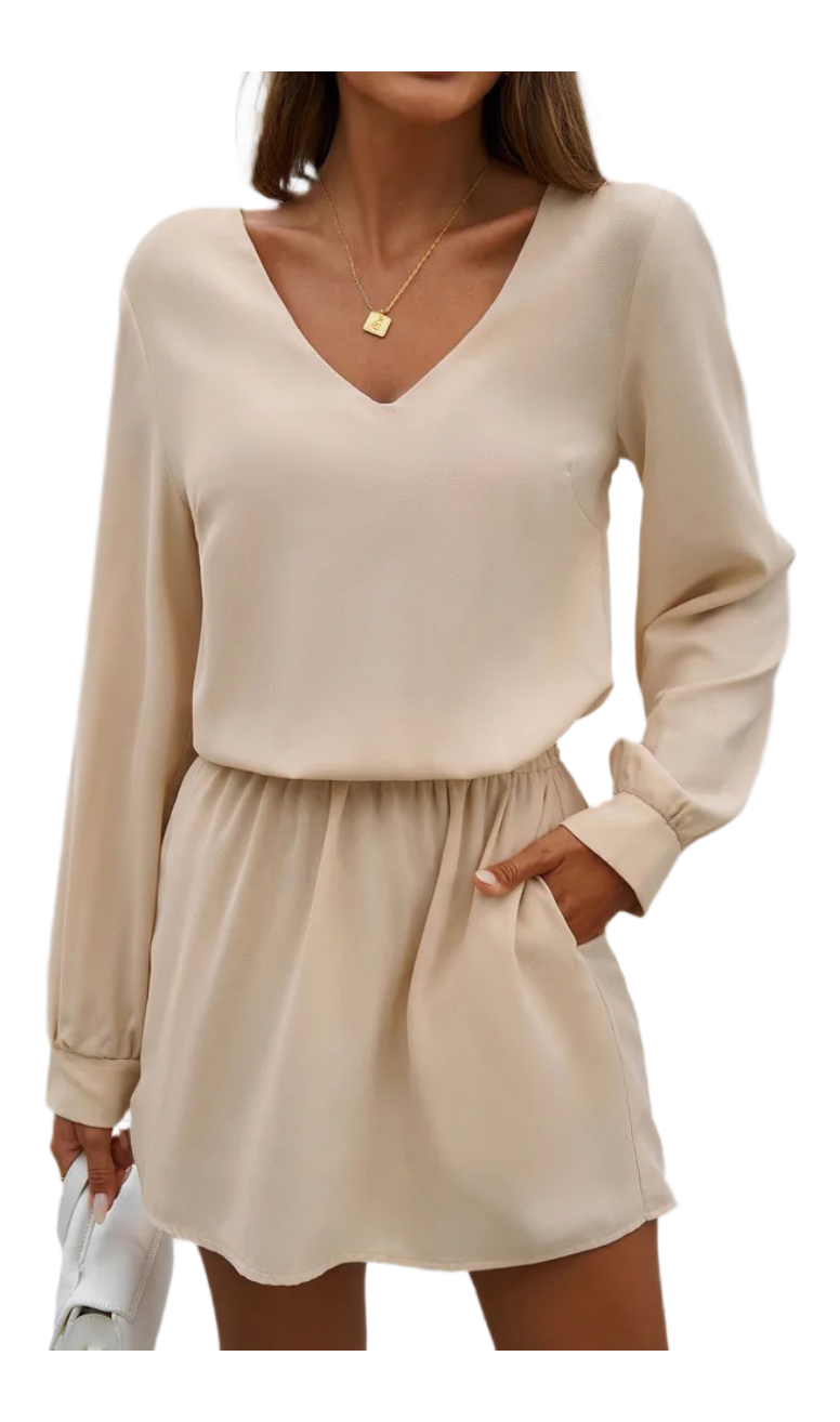 Vestito Donna Corto Midi Abito Maniche Lunghe con Scollo a V Elegante Casual Abiti Swing da Sera Casual Discoteca Cocktail Clubwear di Alta qualità